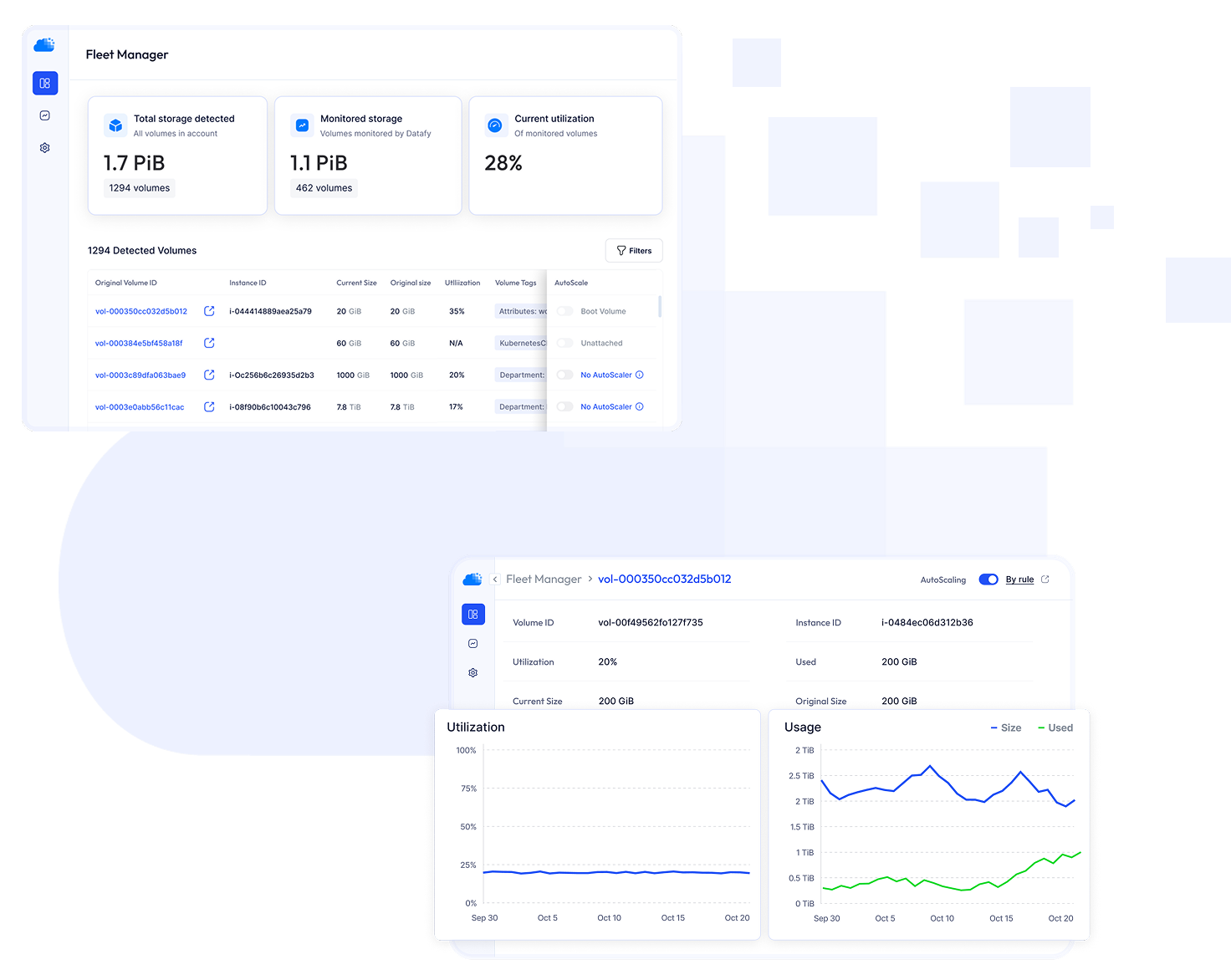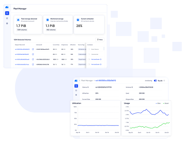 - Use the Datafy dashboard to easily see the real-time potential savings from EBS auto-scaling